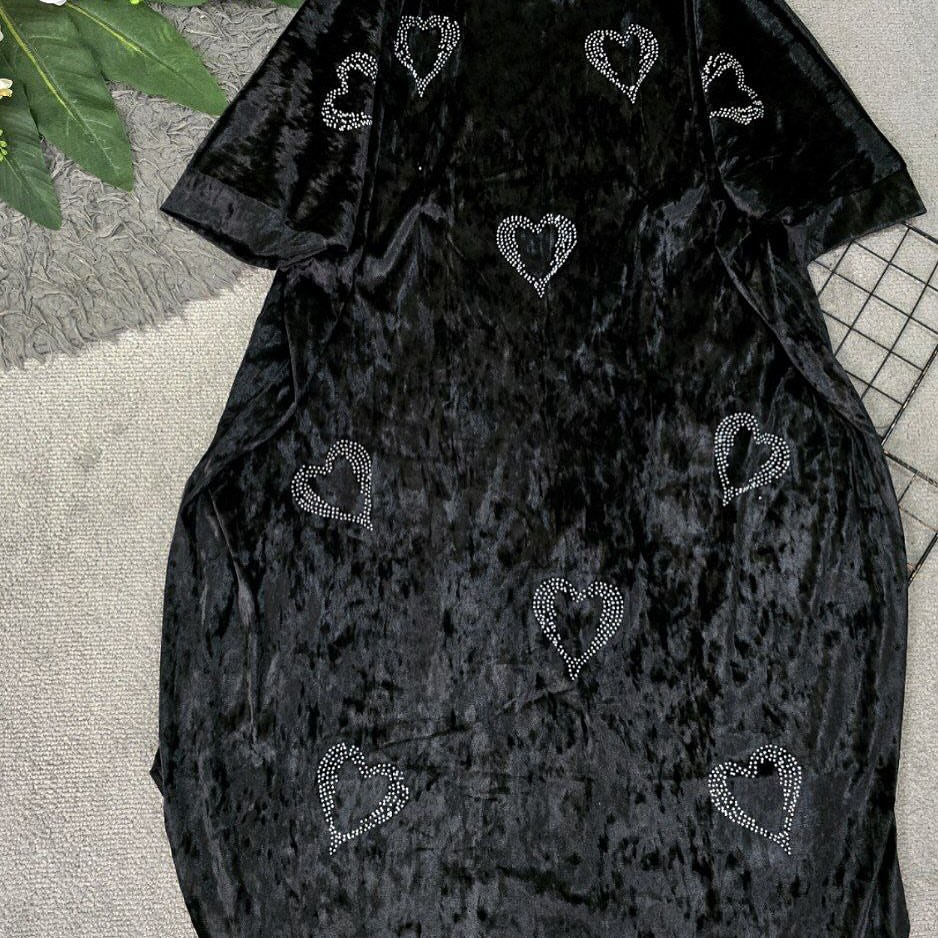 عبا مخمل جنس مخمل آینه ای با کیفیت. رنگ بندی قلبی و ورساچه. سایز ها فری ۳۸/۵۰.