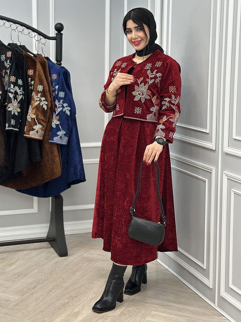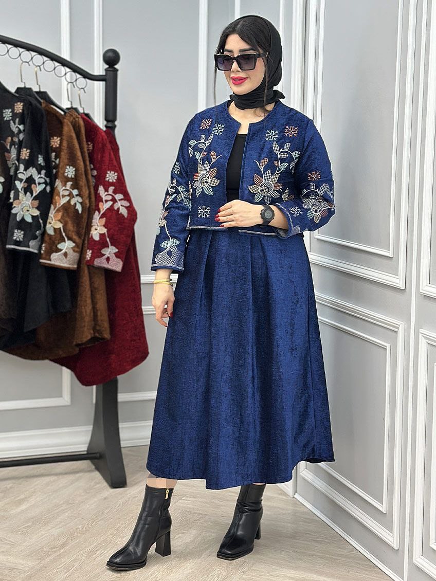 کت و دامن گلدوزی جنس مخمل گلدوزی. کت قد ۴۸ دامن قد ۸۸.